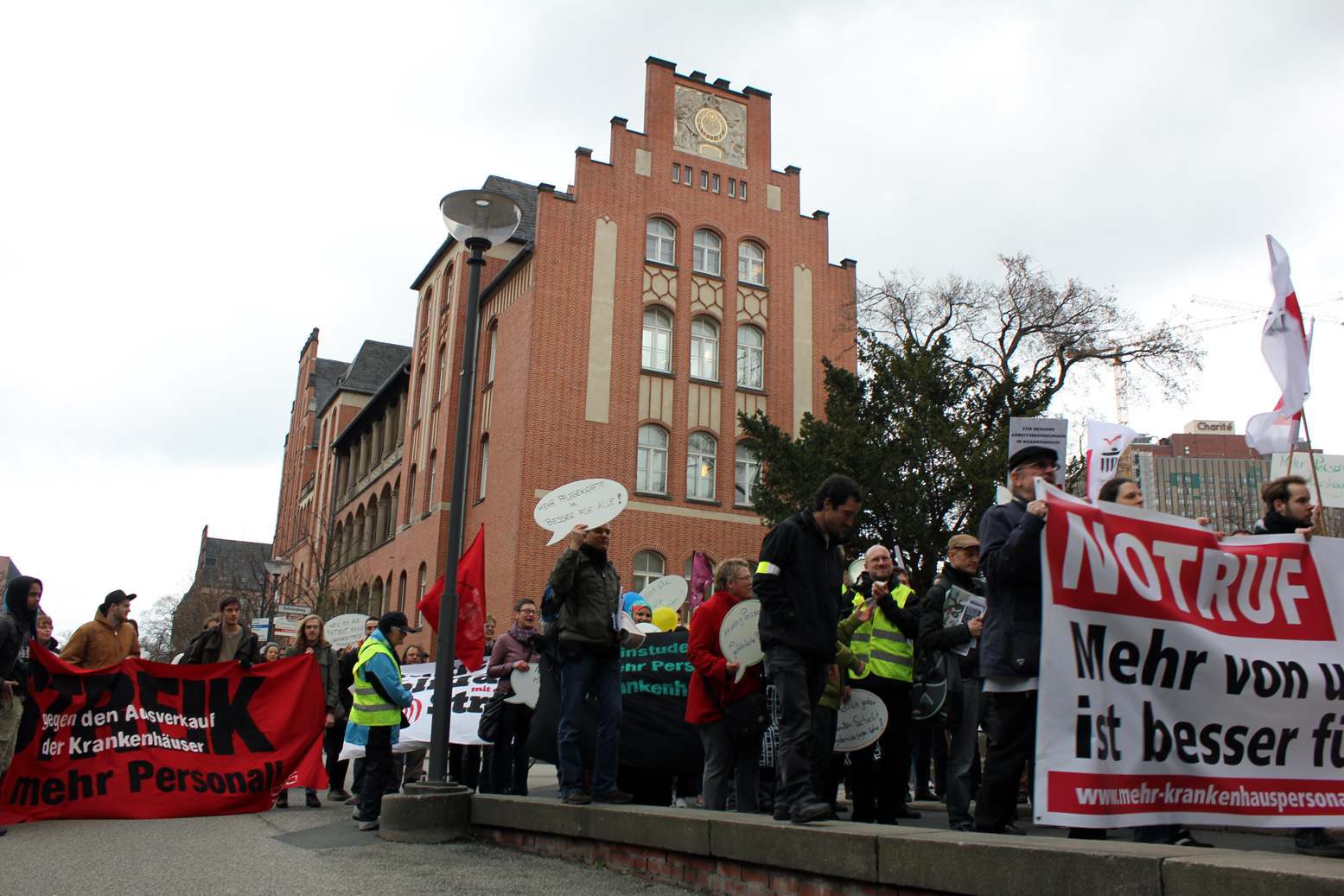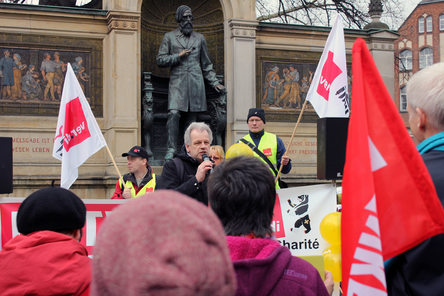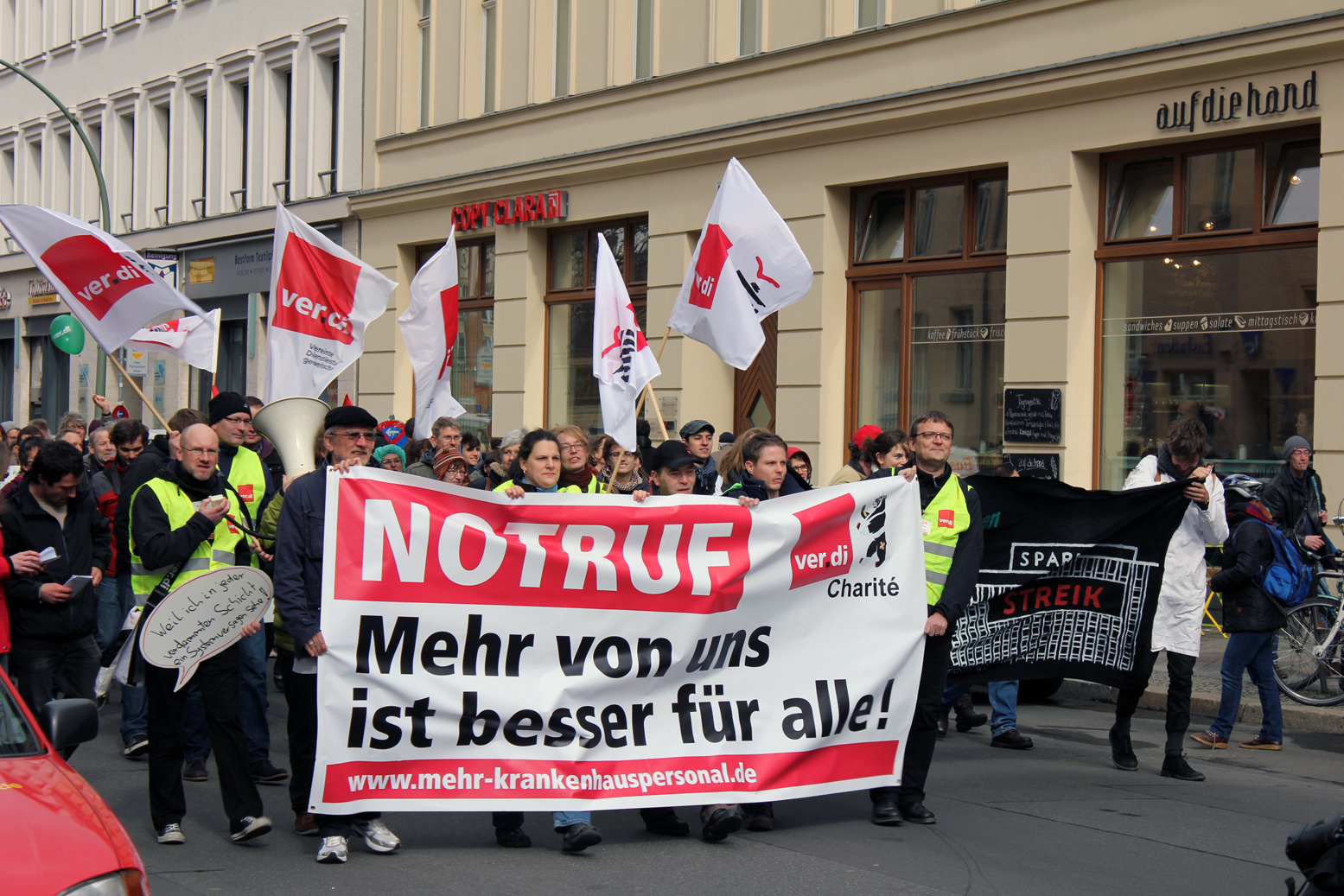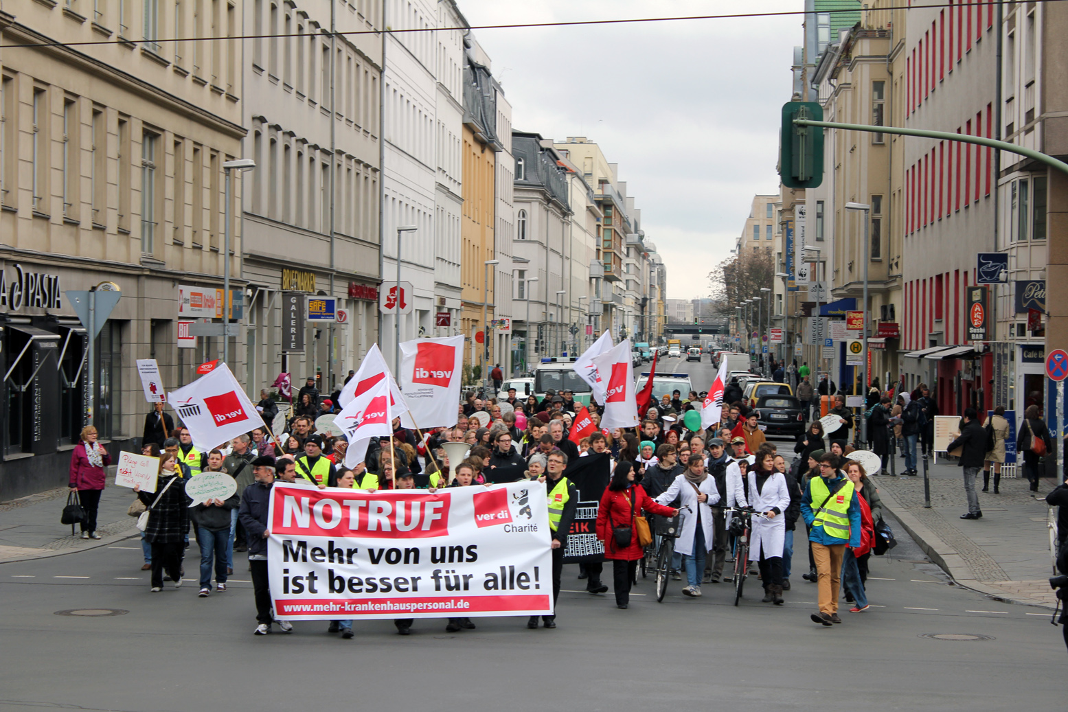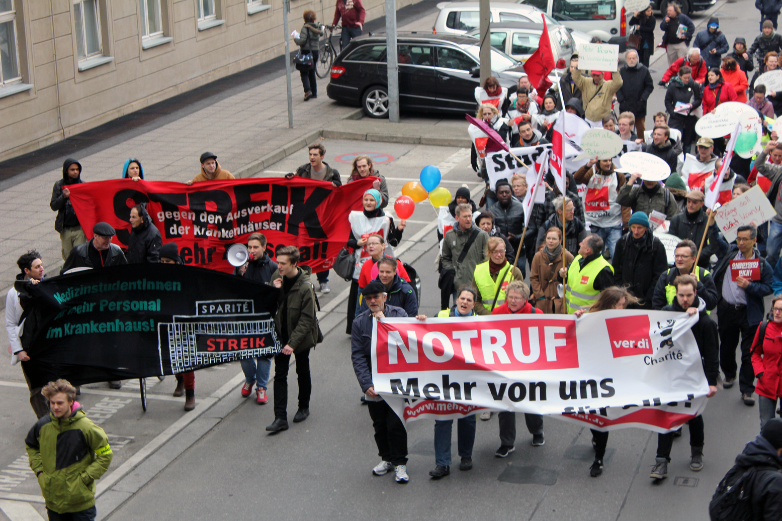 Ursprünglich sollte an diesem Tag ein Warnstreik an der Charité stattfinden. Da sich die Klinikleitung jedoch, angesichts der überwältigenden Streikbereitschaft der Beschäftigten, in die Schlichtung geflüchtet hatte, musste der Warnstreik kurzfristig abgesagt werden.