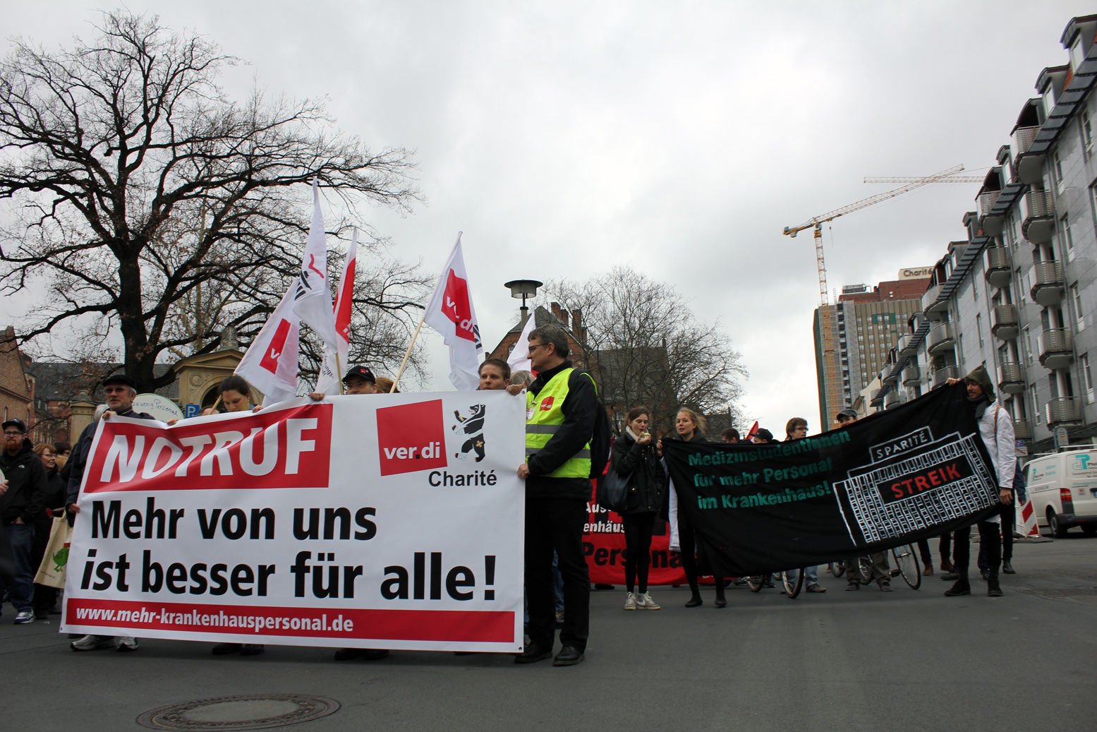 Die Beschäftigten der Charité, die trotz der erzwungenen Absage des Warnstreiks an der Demonstration teilnehmen konnten, betonten, dass der Streik nur aufgeschoben ist und der Kampf um mehr Personal gerade erst begonnen hat.